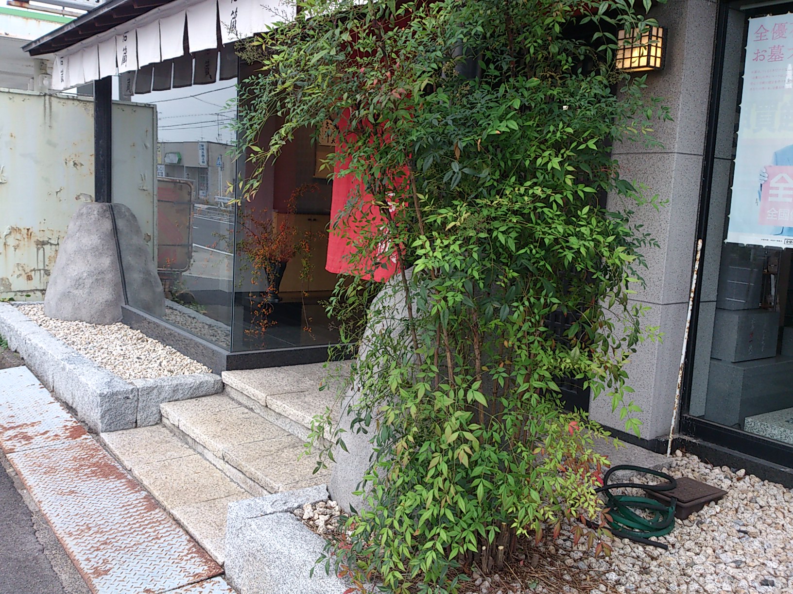 暖簾を設置の際、のびてきたことに気付き、女性陣監督にて枝切りハサミで剪定しました。